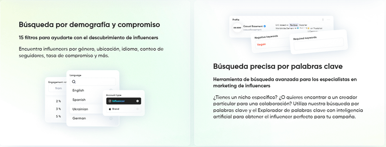 - "Participación de la audiencia (ER)": permite centrarse en influencers más activos cuya audiencia interactúa constantemente con el contenido.